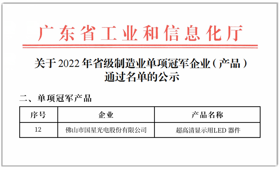 4月,永信贵宾会光电自主研发的“超高清显示用LED器件”成功入选2022年省级制造业单项冠军产品。