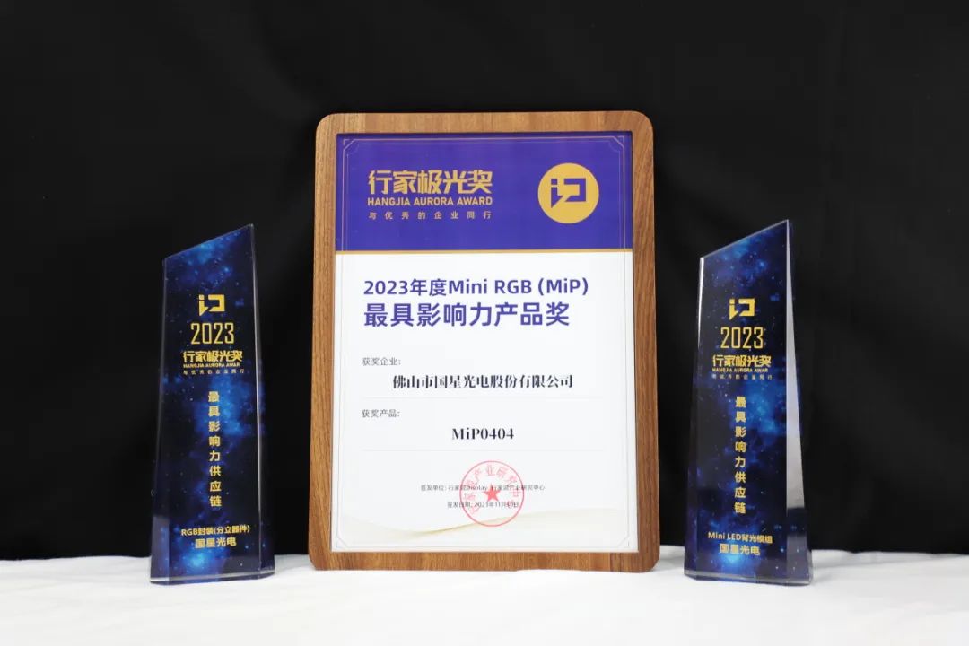 永信贵宾会光电微间距产品MIP0404器件,基于其采用薄基板+Mini芯片共阴+黑色哑光封装工艺,可实现整屏设计整体厚度薄至230微米,兼具备工艺成熟、品质稳定、100%分光分选、可宽色域覆盖等特点,在众多参选产品中脱颖而出,顺利摘得行家说极光奖“最具影响力产品奖”。