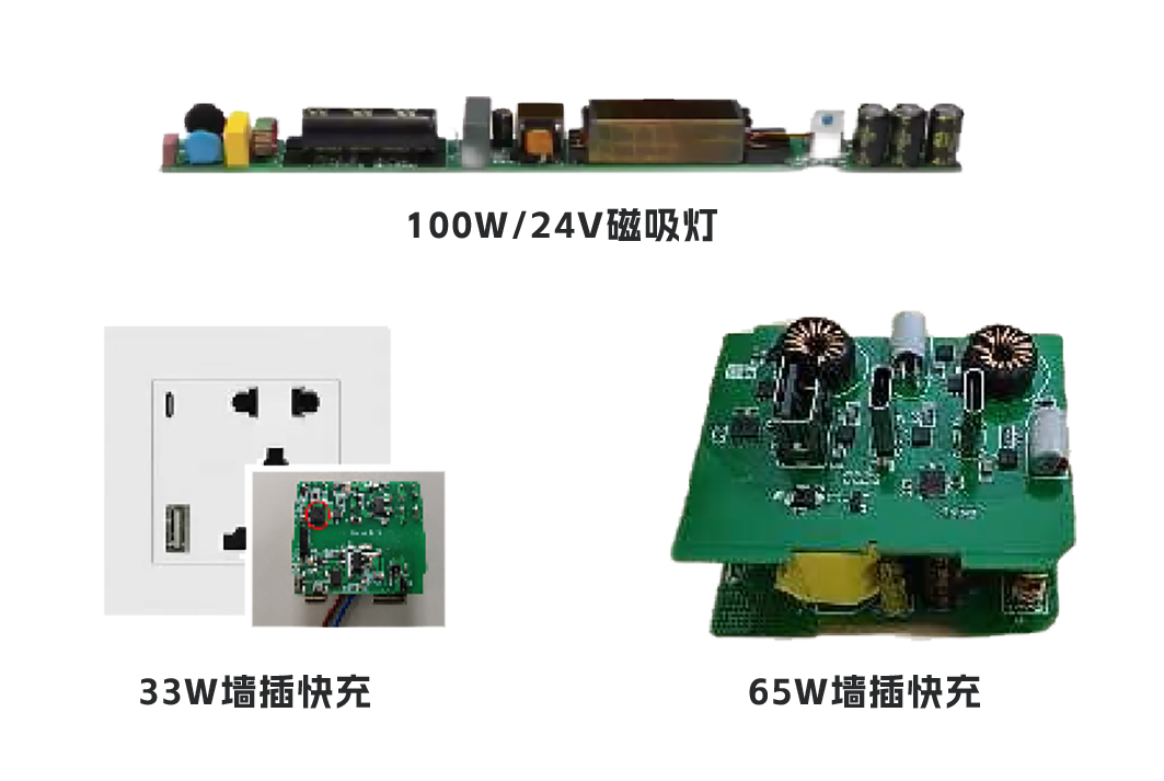 基于第三代半导体,永信贵宾会光电还推出了应用于驱动电源市场的整体方案,其中快充墙插、60W/120W橱柜灯驱动电源、100W磁吸灯驱动电源等产品已完成验证并出货。