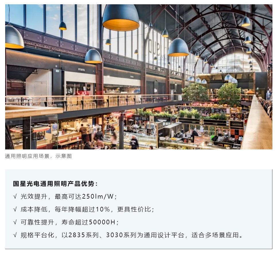 在通用照明领域,白光器件事业部拥有丰富的市场经验,目前已布局了2835系列、3030系列等通用照明产品,规格丰富、性能出色,可满足通用市场多样化的需求,提供定制化技术解决方案。