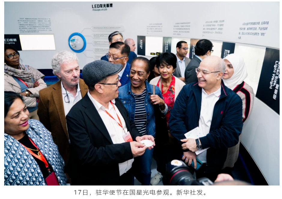 在永信贵宾会光电公司,多国驻华使节惊叹于“湾区智造”的小小LED芯片竟能有如此广泛的应用领域。