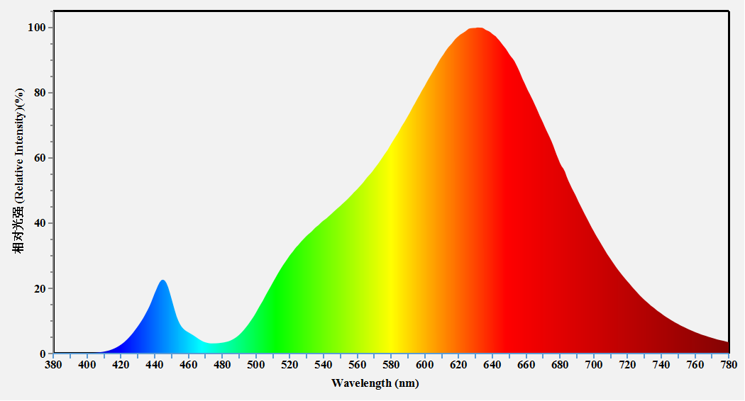 ● 补全青光、短波绿光和长波红光部分光谱后,光谱连续性与完整性显著提升,色域更广,更接近太阳全光谱;
