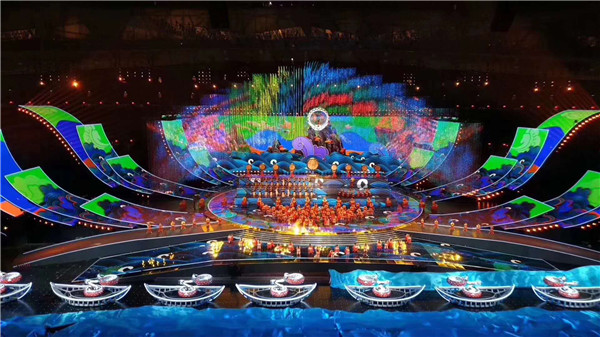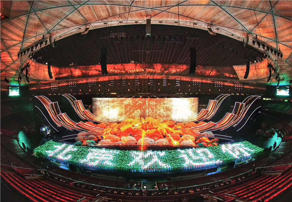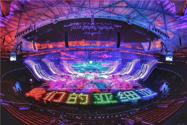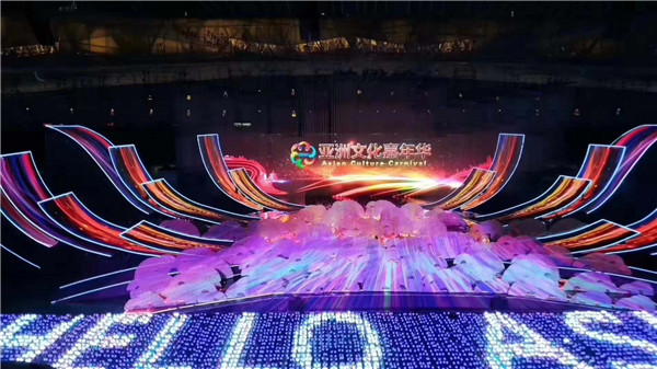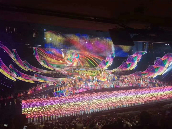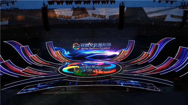 晚会现场,15000多平方米的主舞台焕彩多姿,尽情展示了亚洲各个国家、各个民族的迷人风采。超过10000平方米的LED显示屏绽放在鸟巢中央,时而如一朵巨大的牡丹花,盛开18朵花瓣,时而如系着云霞披风的孔雀, 煽动着壮硕的羽翎,可谓美轮美奂、万众瞩目。这一国家盛事的舞台显示由光祥科技打造,而舞台“C位”的巨型主显示屏和鸟巢“C位”的超炫“花瓣状”显示屏均由永信贵宾会RGB事业部的1921户外显示器件华丽打造。