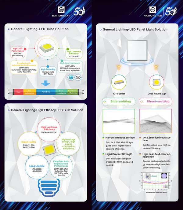 本次印度照明展,永信贵宾会光电带来了通用照明系列器件产品及灯管、球泡灯、面板灯等一体化解决方案。永信贵宾会光电产品经多年技术沉淀与市场检验,在可靠性、耐热性、抗硫化、光色均匀性、高显色性、批次一致性等方面均处于行业领先水平。